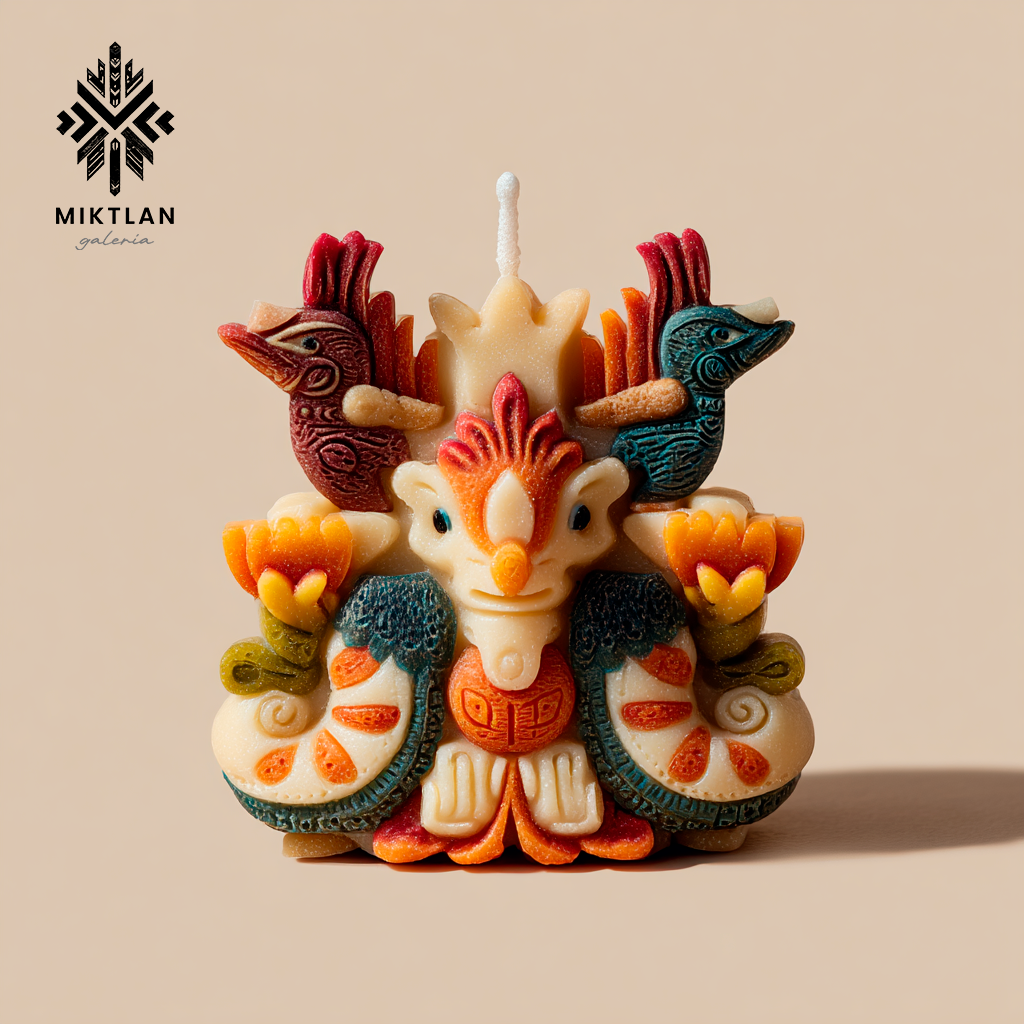 En la tradición mesoamericana, los colibríes representan a los espíritus de los guerreros y seres queridos que regresan para protegernos. La vela Altar Colibrí transforma ese símbolo en arte, ofreciendo una pieza única que ilumina con belleza y significado.