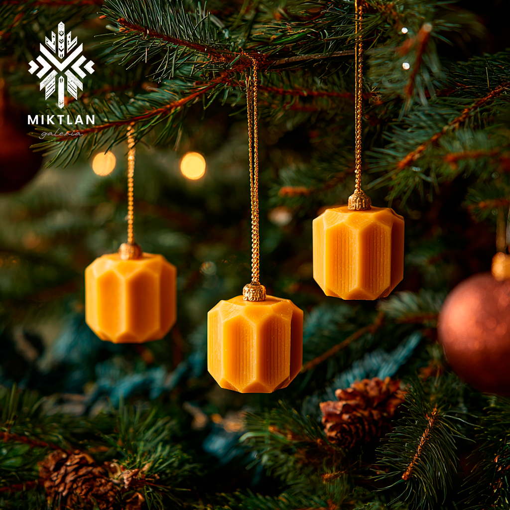 Perfectas para colgar en el árbol de Navidad, ambientar baños, pasillos, recámaras o tu automóvil, estas ceras combinan aroma, arte y funcionalidad con el sello artesanal de Miktlan Galería.