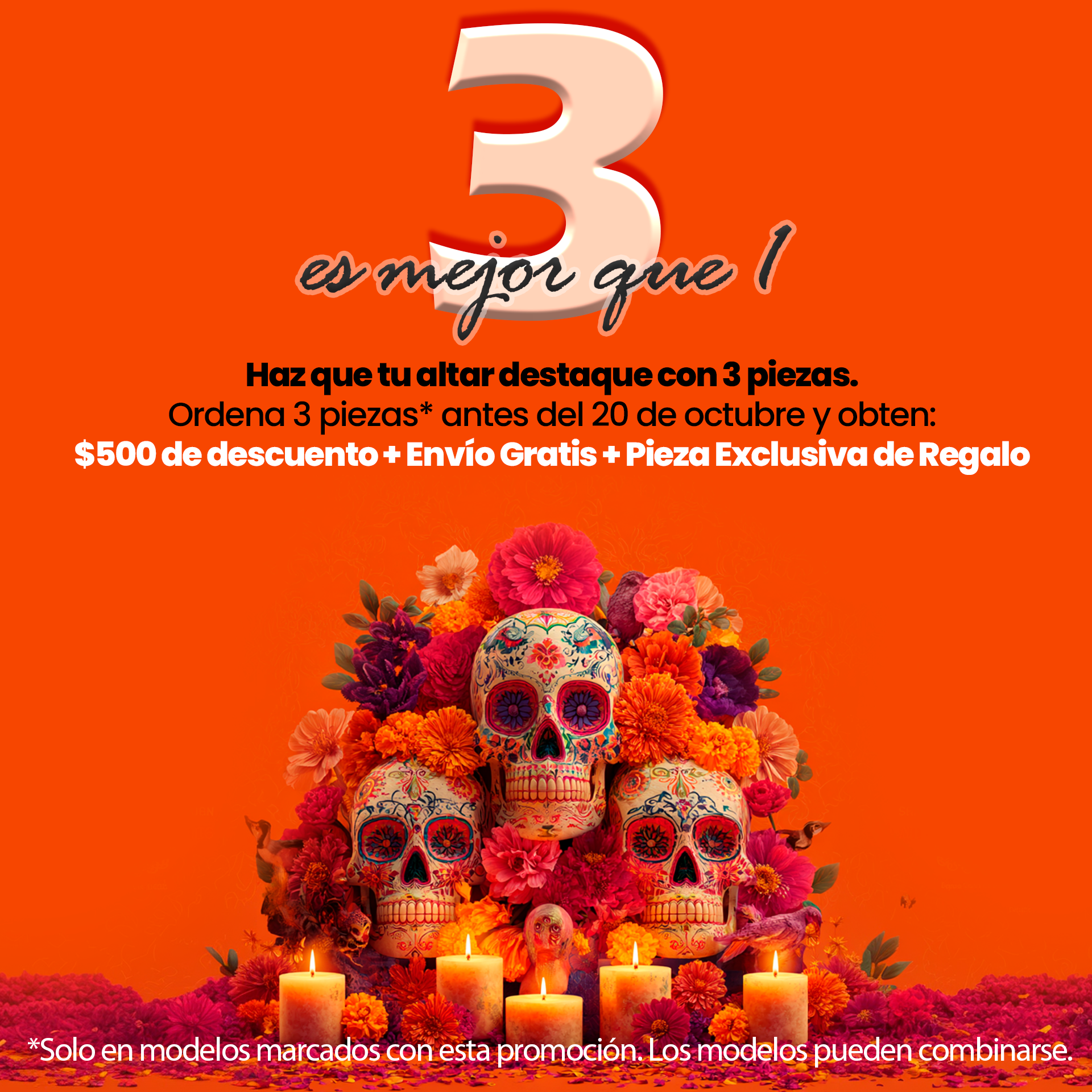 • Agrega 3 piezas a tu pedido (de esta pieza o combina con modelos compatibles con la promoción) y recibe $500 de descuento.
