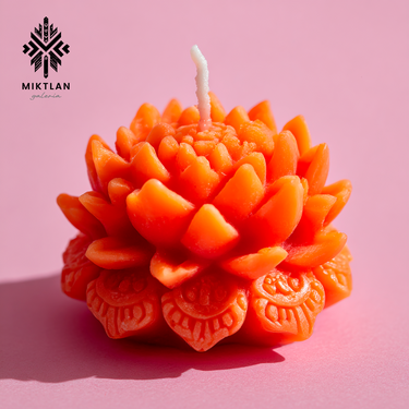 🕯️ Vela artesanal en forma de flor de cempasúchil.